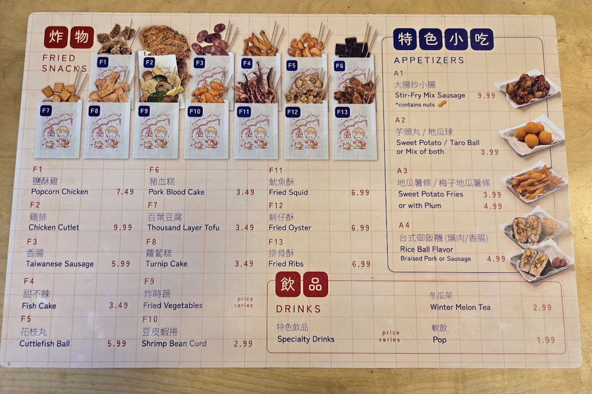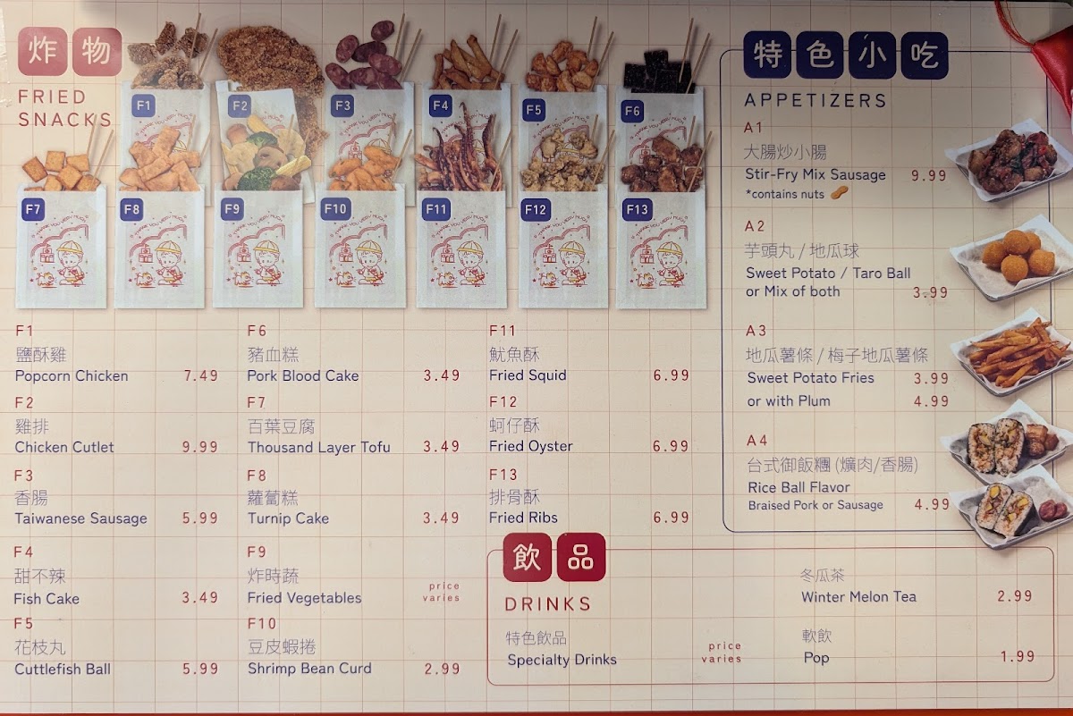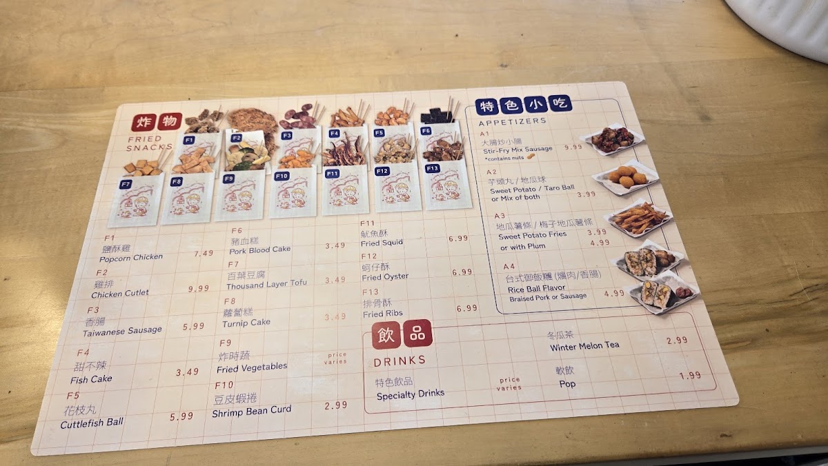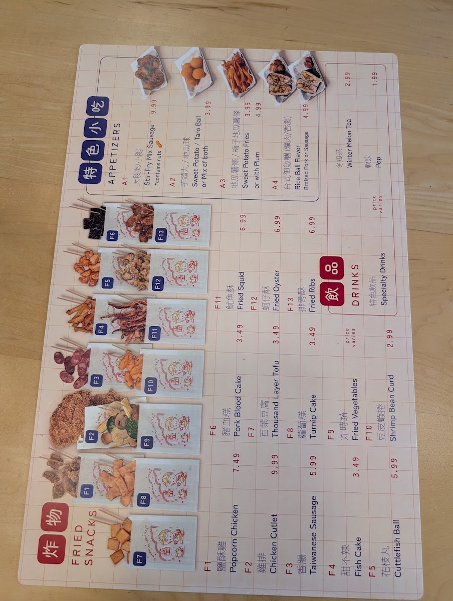 Fried Snacks such as the crispy Chicken Cutlet and savory Taiwanese Sausage are crowd favorites. For a light start, indulge in the Stirfried Mix Sausages or Popcorn Chicken, promising a burst of flavor in every bite. Don't miss out on signature dishes like the Signature 886 Bento, which offers a generous portion, including a delightful serving of braised minced pork and an egg, making it a wonderfully complete meal.